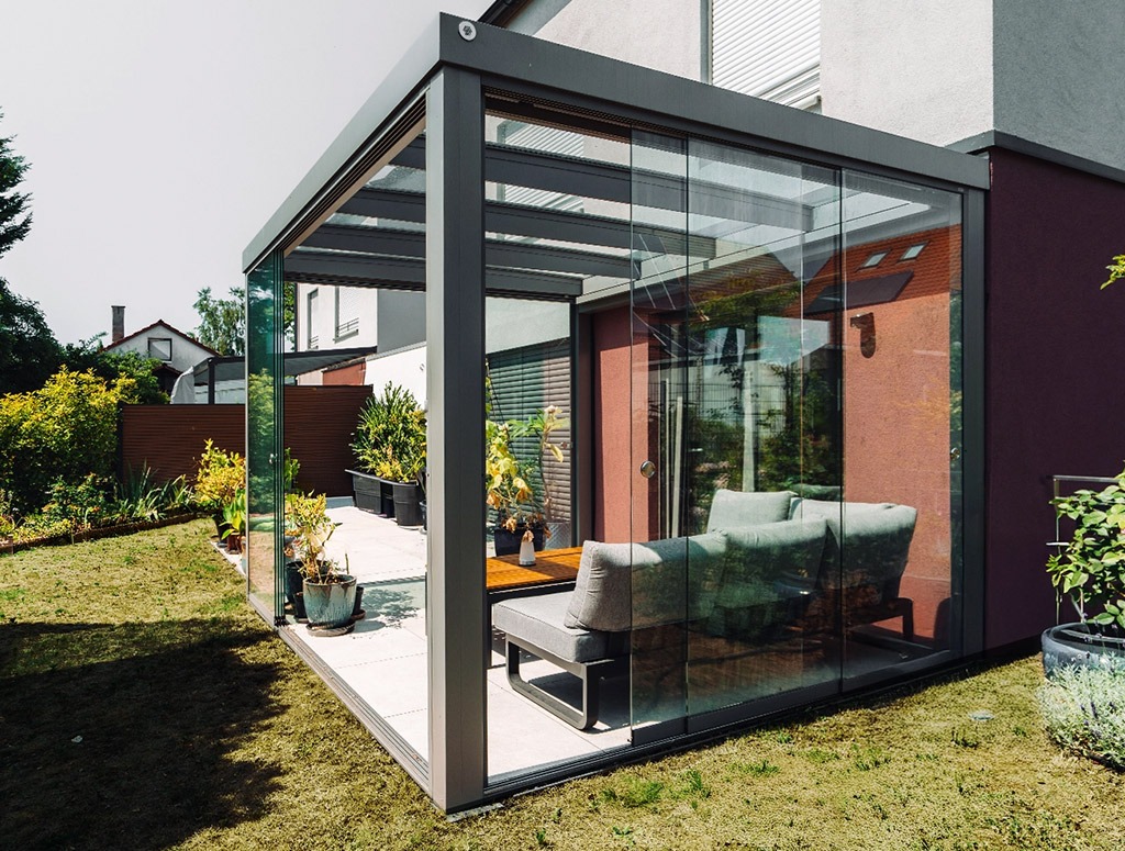 Genießen Sie Ihre Terrasse bei Sonne, Regen oder Hitze. Ideal für alle, die ihren Außenbereich in ein hochwertiges, wettergeschütztes Wohnzimmer im Grünen verwandeln möchten.